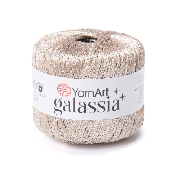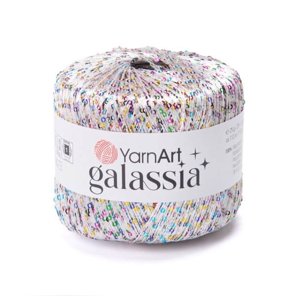 YarnArt Galassia to wyjątkowy rodzaj cienkiej włóczki poliestrowej, charakteryzującej się subtelnym połyskiem i wszytymi cekinami. Idealnie nadaje się do tworzenia eleganckich dodatków wieczorowych, szalików lub jako nić dziewiarska, nadająca odświętny charakter innym projektom.