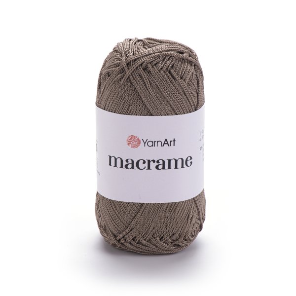 Macrame 6 x 90 g. Przędza dziewiarska YarnArt Macrame. Skład: 100% poliester. Błyszcząca, cienka poliestrowa przędza sznurkowa idealnie nadaje się do szydełkowania i dziania torebek, toreb i koszy, mat mat, dywanów i poduszek dekoracyjnych.