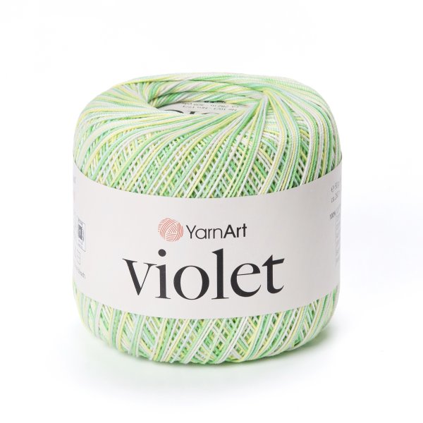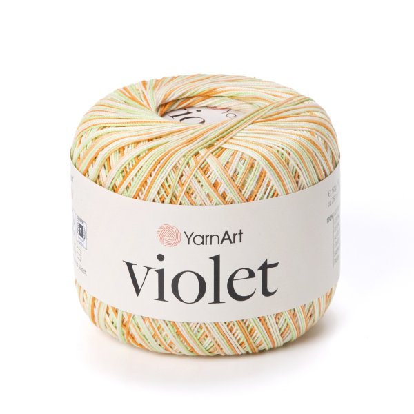 Violet,Violet Melange przędza 6 x 50 g. Bardzo popularna przędza ze względu na dużą różnorodność kolorów, wykonana jest również w 100% z merceryzowanej bawełny. Charakterystyczną cechą tego włókna jest jego gęsty, jednolity skręt i niska grubość. W gęstych wzorach taka przędza może być sztywniejsza, ta właściwość może być wykorzystana jako zaleta przy robieniu butów, torebek, ozdób i innych produktów, które powinny zachować swój kształt. Jeśli chcesz dziać sukienkę lub letni sweter za pomocą tej przędzy, zalecamy luźniejszy wzór, aby upewnić się, że produkt jest wystarczająco miękki. Skręcanie pozwala gotowym produktom zachować dowolny wzór nawet po wielu praniach. Zasadniczo przędza jest zalecana do dziania serwetek, szali, ubrań z wzorami koronkowymi (w tym dziecięcymi). Nadaje się do zabawek Hardanger i haftu. Bardzo szeroka paleta kolorów pozwala realizować wszelkie pomysły.