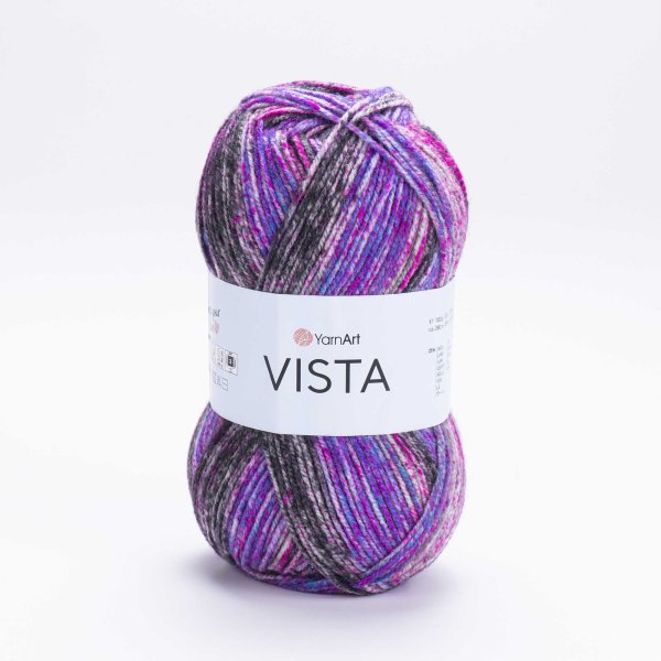 Miękka, ciepła, półwełniana włóczka barwiona z nadrukiem własnego wzoru w aktualnych atrakcyjnych kolorach w sumie w 32 kombinacjach.